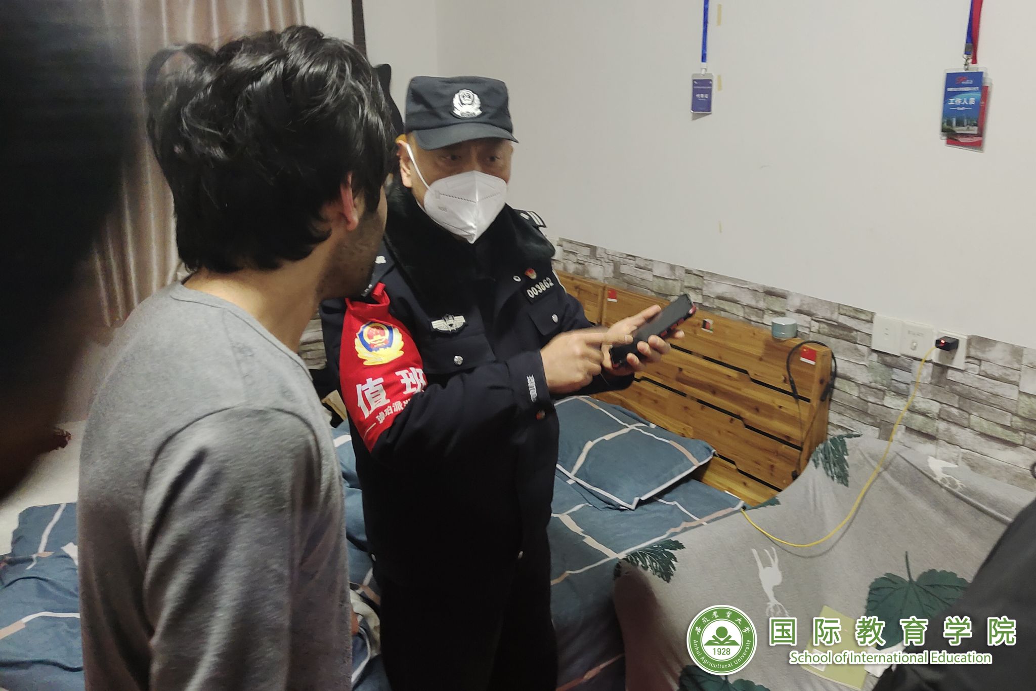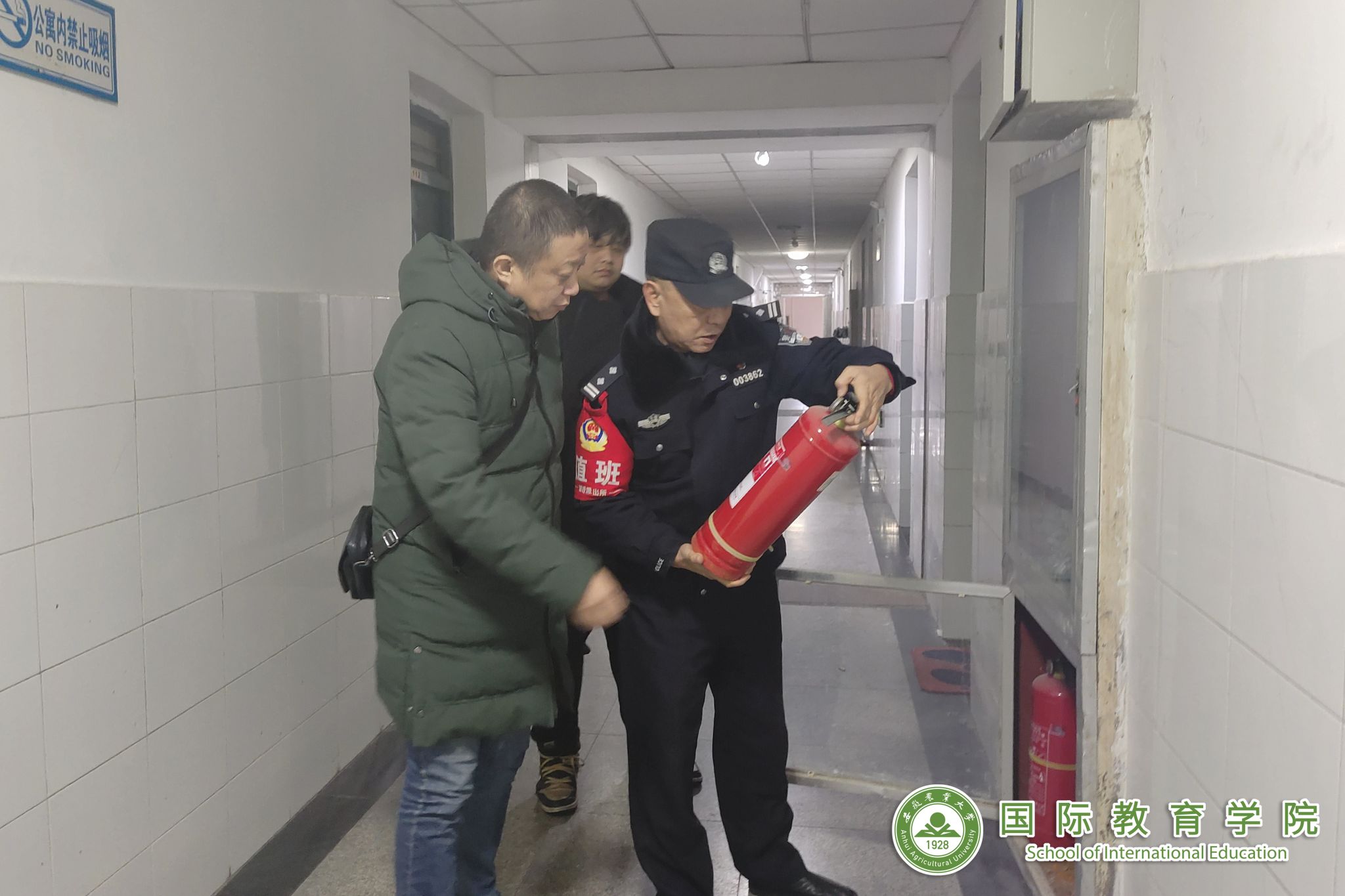 本网讯 近日,为进一步加强校园各项安全管理,国际教育学院联合保卫处、琥珀派出所,对留学生公寓的寒假消防安全进行专项检查,并对在校留学生开展消防安全内容培训和提升安全意识宣导。