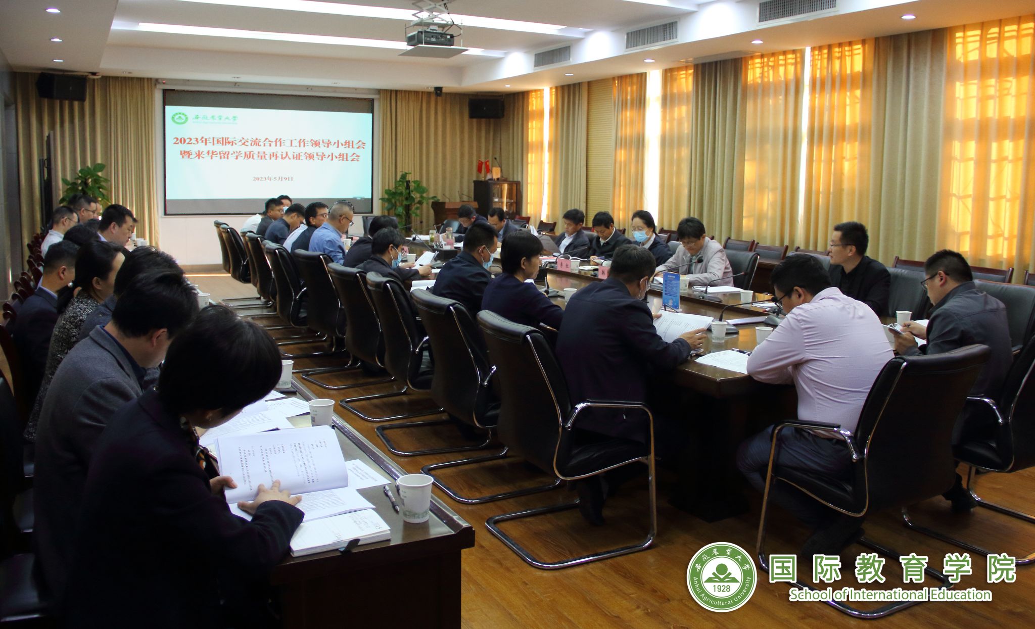 5月9日下午,我校召开2023年国际交流合作工作领导小组会暨来华留学质量再认证领导小组会。会议由常务副校长马传喜主持。校领导裴树东、李红、韩军、操海群出席会议。党政办、人事处、发规处、教务处、研究生院、财务处等单位主要负责人,各学院院长、分管留学生工作负责人,留学生导师代表参加了会议。