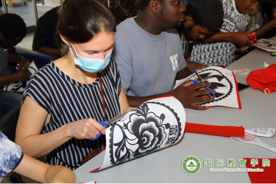 10月3日下午,学院在国际生综合楼大厅开展非遗文化剪纸活动。本次活动邀请了具有丰富剪纸教学经验的丁健老师。在向大家介绍完剪纸的起源、历史、寓意等内容后,丁老师带领国际学生展开剪纸实践。在丁老师的指导下,同学们完成了国画牡丹、书法中国、国宝熊猫以及多个中国汉字的剪纸,在制作的过程中深刻感受到了中华传统文化的独特魅力。剪纸文化源远流长,经久不衰,是中国民间艺术的瑰宝,此次剪纸体验活动增强了留学生们对传统文化的参与感和获得感。高飞同学表示,剪纸培养了他的耐心,让他看到另一面的中国,他还准备买全工具在课余时间自己练一练。