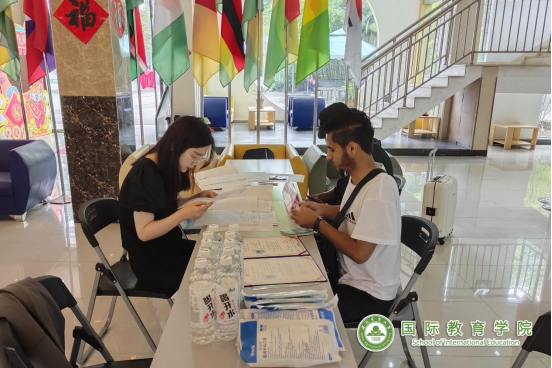 9月15日开始,辅导员接过迎新第一棒,迎接国际新生们前往国际教育学院综合楼大厅办理报到注册手续。