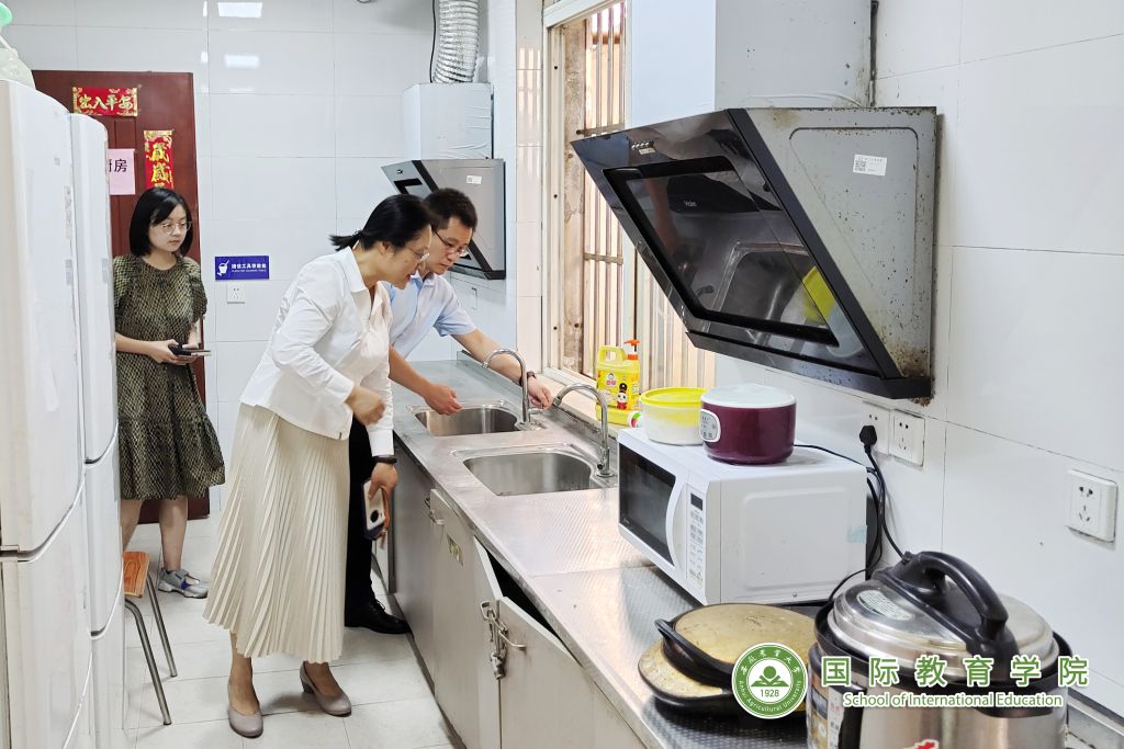 李红对宿舍楼、学生宿舍、公共厨房、院落等设施设备工作运转情况、安全和卫生等情况进行了细致查看,详细询问和查看了今年新生住宿分布及管理情况,并对需要进一步整改提升的地方进行了现场指示指导。李红强调,国教院要进一步加强公寓日常管理,并在管理中贴近学生,加强留学生公寓的育人工作。切实将学生的生活服务保障、后勤服务保障和校园安全保障工作任务落到实处,确保为学生提供整洁、舒适、温馨的住宿环境。