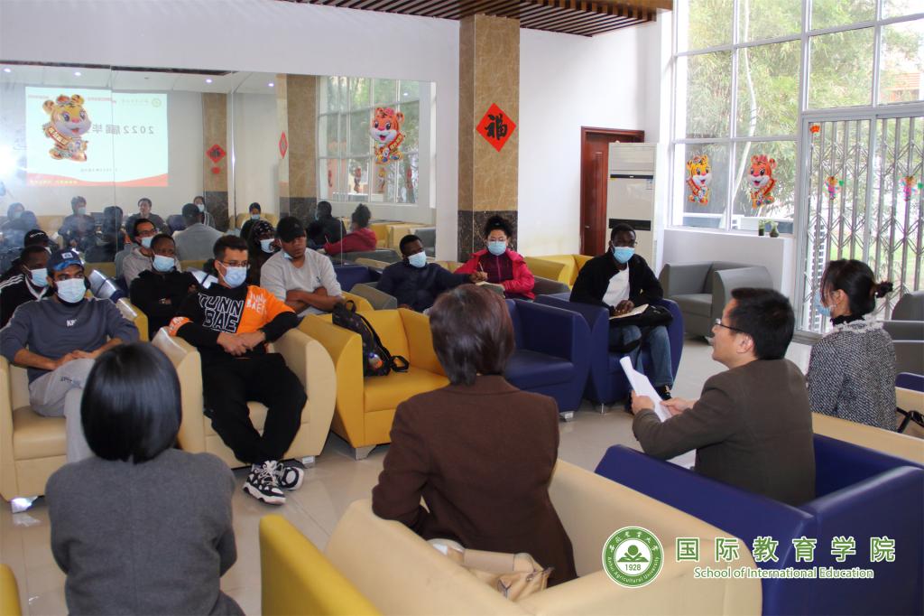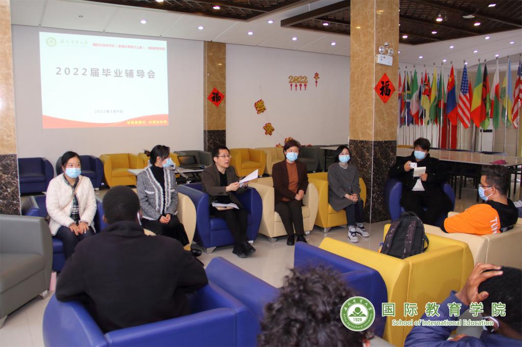 3月9日,国际教育学院在国际生综合楼大厅举办了2022年度毕业准备辅导会。国际教育学院院长孙裴、副处长张文静、国际学生班主任与本年度预毕业生们参加了此次活动。