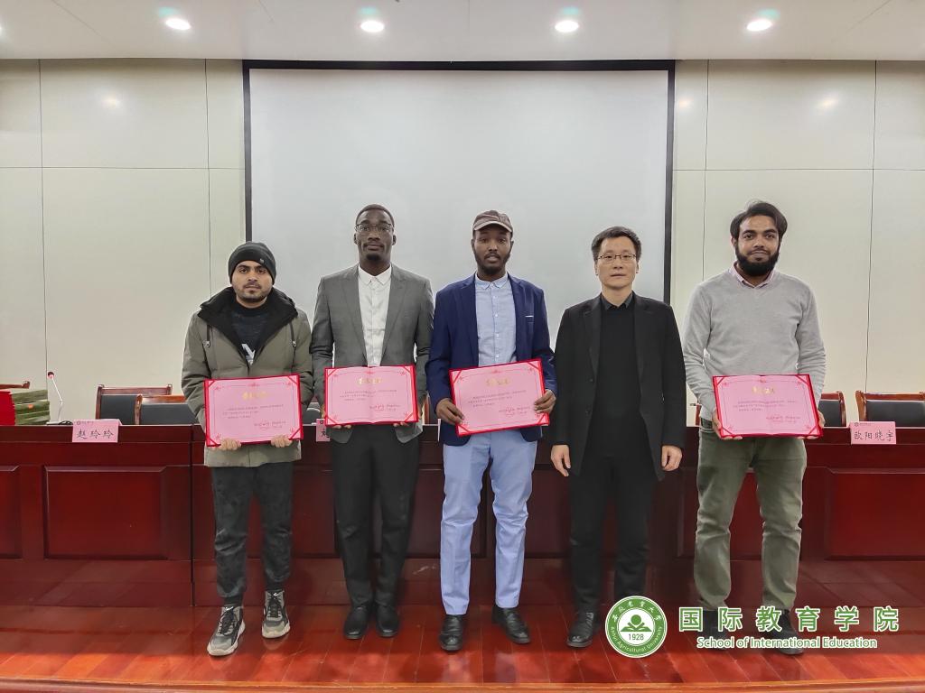 随后国际教育学院院长孙裴及相关教师对国家留学基金委“优秀来华留学生奖”以及校内外各项活动中获奖的集体和个人进行了表彰并颁发荣誉证书。