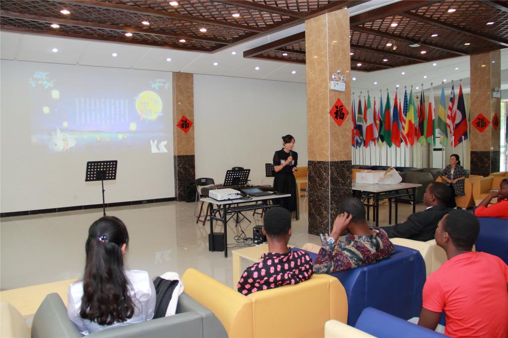 留学生班主任老师们用中英双语结合幻灯片展示的方式介绍了国庆节、中秋节的习俗及文化背景。留学生们听的津津有味,表示这是在中国最难忘的一个节日。大家还为9月份过生日的五名同学送上了生日祝福。
